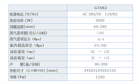 本机适用于各种形状与规格的旋开盖玻璃瓶蒸汽排气(抽真空)和封口。采用变频调速、蒸汽喷射排气和机械封盖机构。功能齐全、自动化程度高。适用于各种调味品、酱菜、腐乳、果汁、果酱等产品的四旋盖与三旋盖的真空封口。